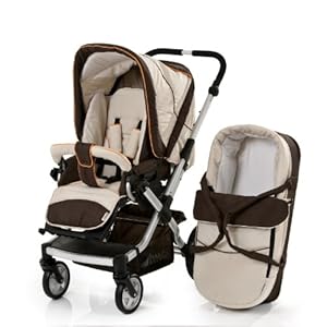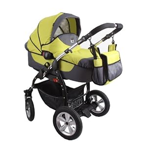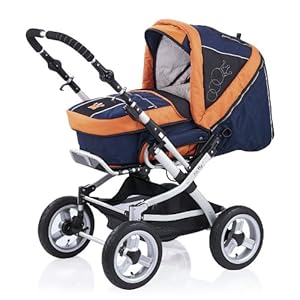 Trendiger und wendiger Kombi-Kinderwagen mit feststellbaren Schwenkrädern, leicht umsetzbare Sitzeinheit mit verlängerbarer Fußstütze, komfortable 3 in 1 Tragetasche. Modernes, schickes ALU-Gestell mit 4-fach Federung. Höhenverstellbarer Schieber mit weichen Softgriffen und seitlichen Reflektoren. 5-Punkt Sicherheitsgurt und abnehmbarer Sicherheitsbügel. Rückenlehne und Fußstütze mehrfach bis zur Liegeposition verstellbar. 28cm kugelgelagerte Luftreifen hinten, 18cm Schwenkräder vorne. Geräumige